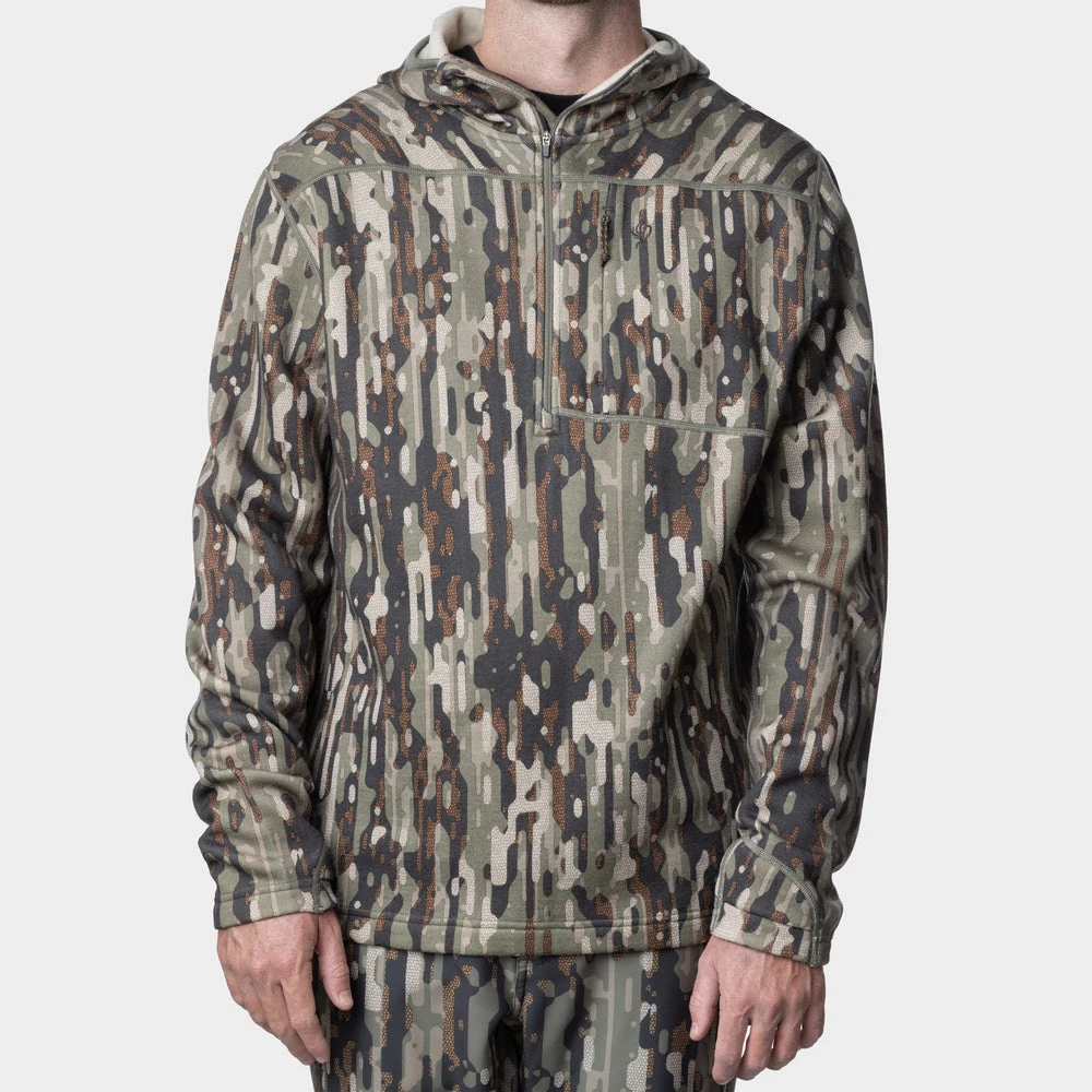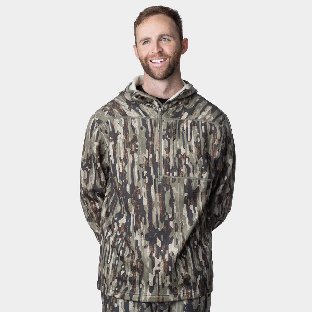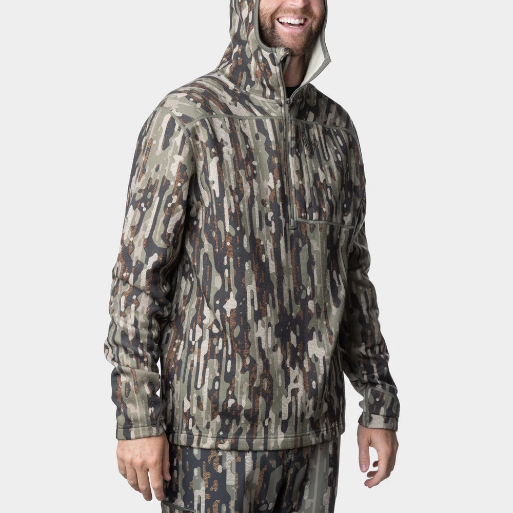 A sharp looking and high performing piece, this well-rounded Merino Hoodie wears comfortably from temperature ranges 30 degrees to 70 degrees. It features a soft brushed fleece next-to-skin layer, thumb holes for easy layering and warmth, flat locked seams and a heavy weight construction for ultimate comfort as a mid or outer layer. The Merino Wool advantage is real: this garment regulates your body temperature and doesnโt run too hot as temperatures rise later in the day.