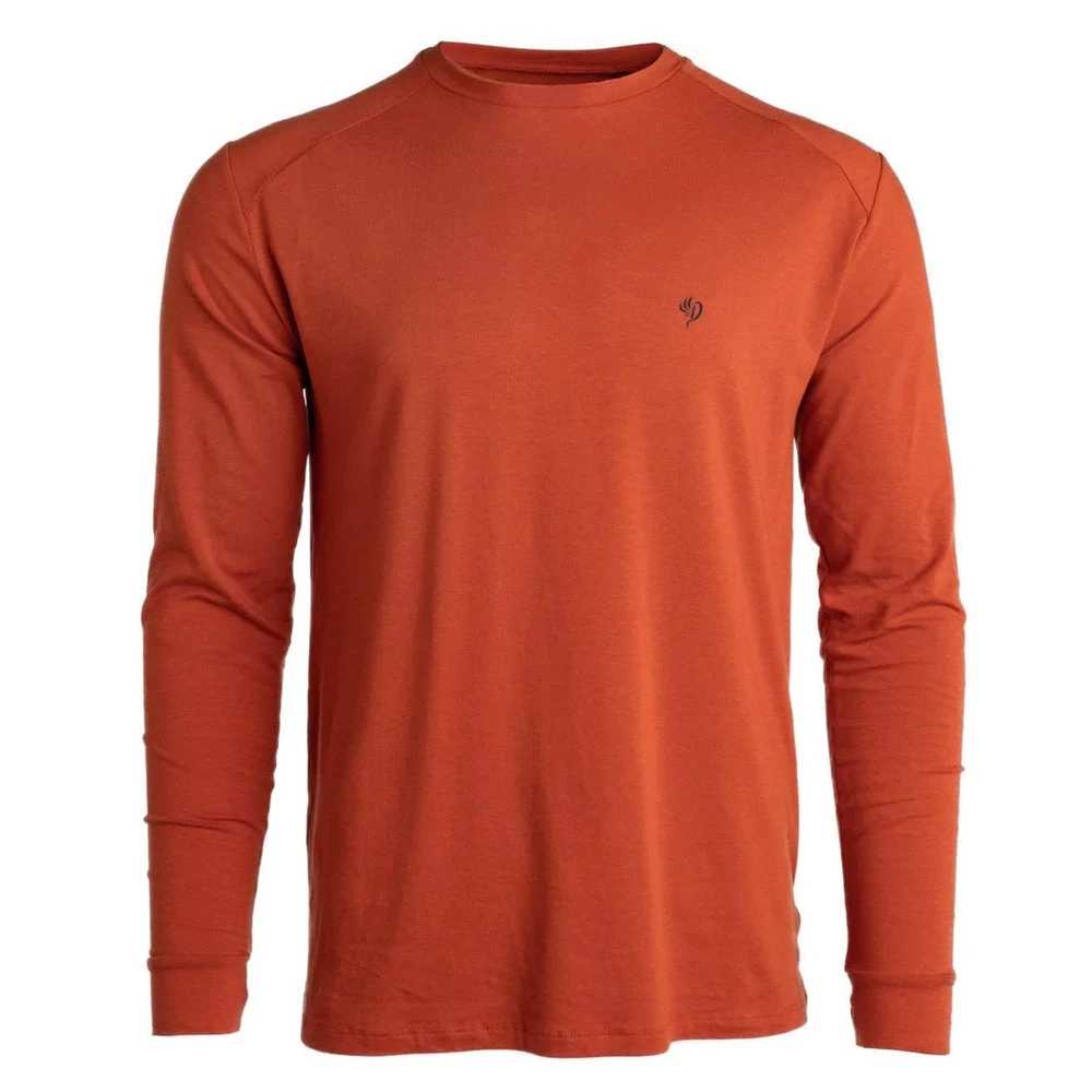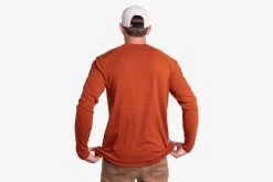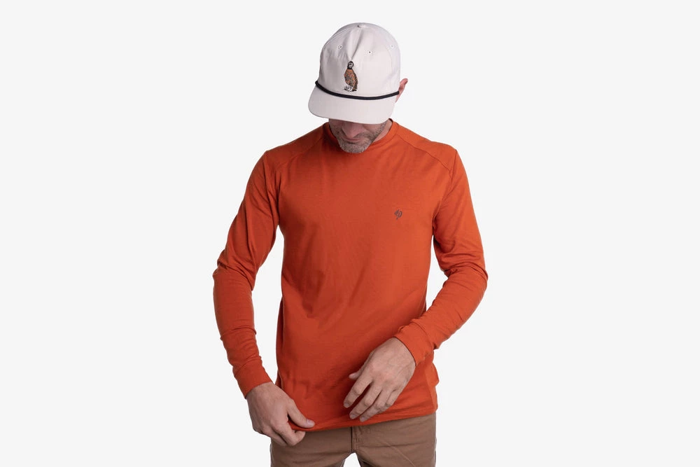 Super soft and comfortable – what more could you ask for out of a performance shirt? This 180gsm bamboo crew neck shirt is ideal for pretty much any adventure outside. It wears butter soft next to skin and also breathes well. The Campfire orange color is easy on the eyes and the athletic fit makes this a great shirt for backcountry hiking, fishing, or grilling out with friends.