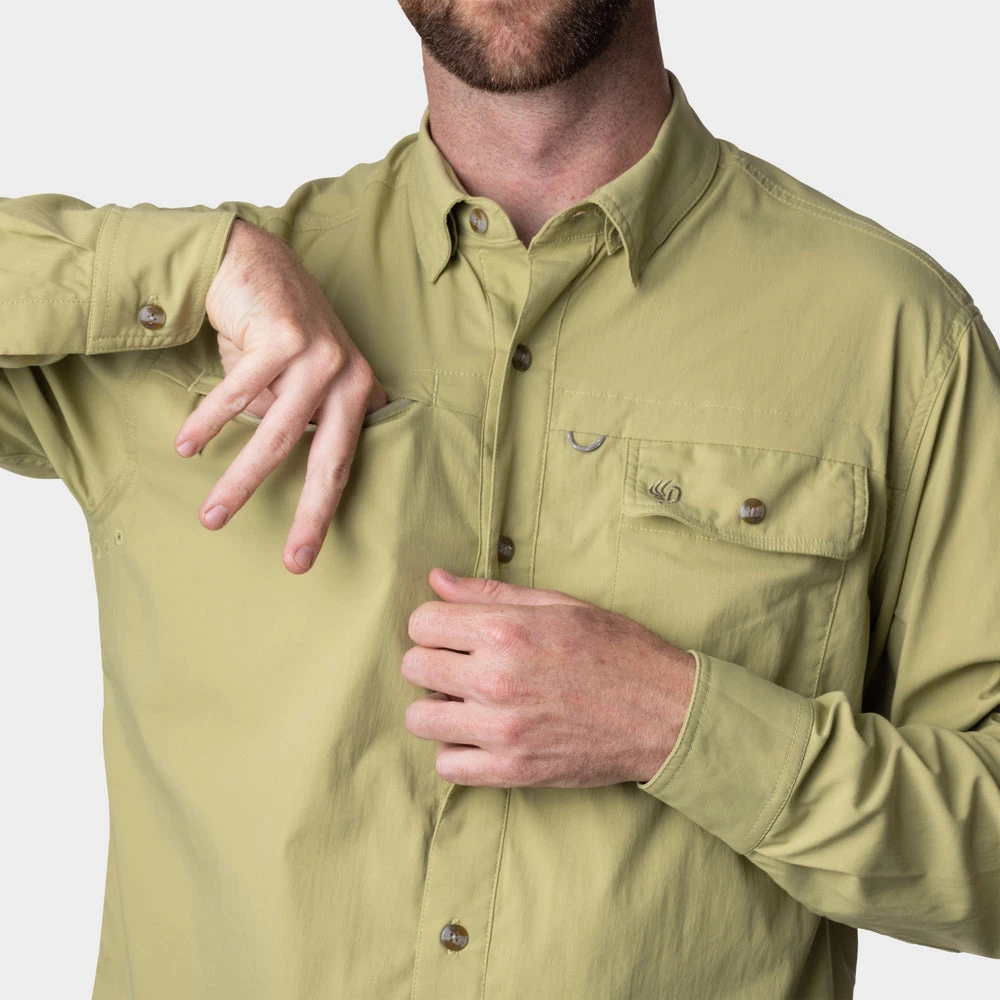 The ultimate fishing shirt has arrived! This UPF50+ lightweight fishing shirt is as light and breathable as it gets. Ditch the polyester and level up with this Nylon fabric with mechanical stretch. Specifically designed for anglers, the signature fishing shirt has just the right amount of pockets to hold your small gear without getting in the way. Go for a solid and a plaid – it’ll be the best fishing shirt in your closet.